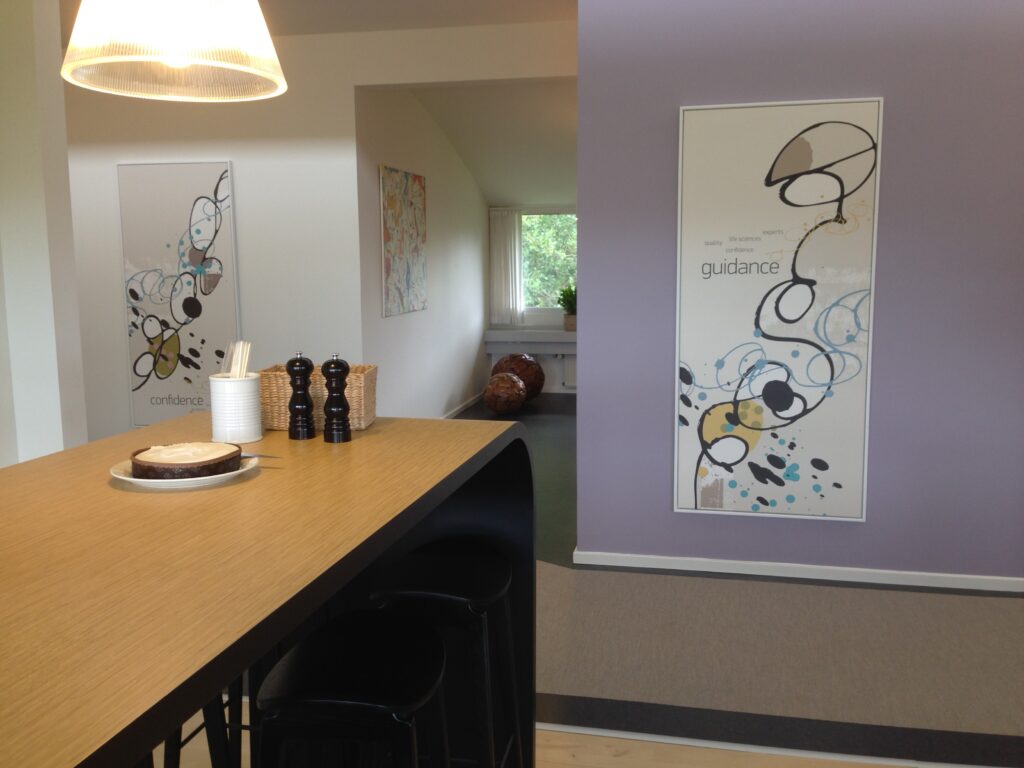 Rumvurdering og anbefaling af vægfarver med det formål at skabe de mest optimale rammer med fokus på velvære og trivsel. Indretningsforslag herunder skabelse af optimal velkomst og gangareal. Vægudsmykning med branding.