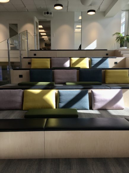 En gennemgribende ombygning af den gamle gymnastiksal på Bygholm Landbrugsskole betød at elever og lærere kunne tage nyt lyst auditorie, mødelokaler og cafémiljø i brug. Med ombygningen fulgte desuden helt nye møbler til de nye lokaler.