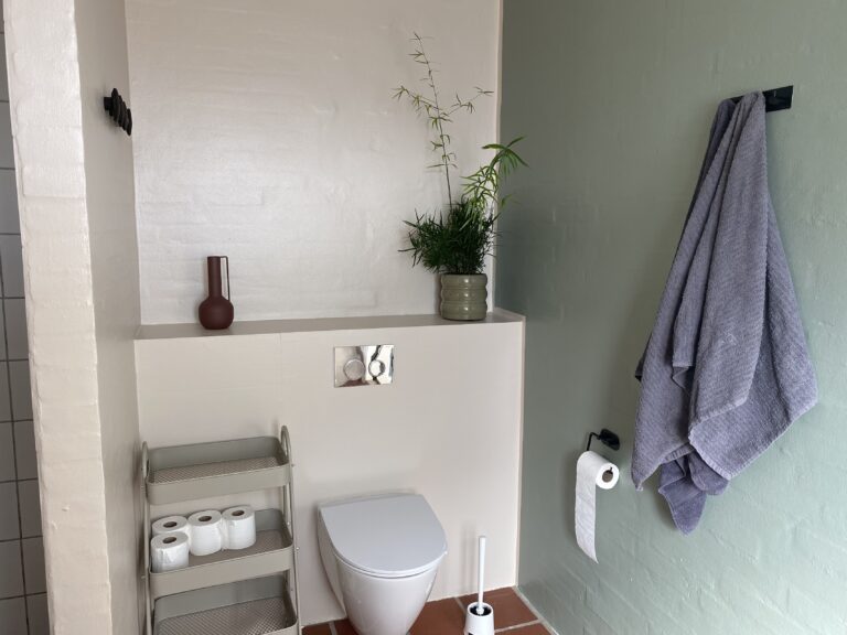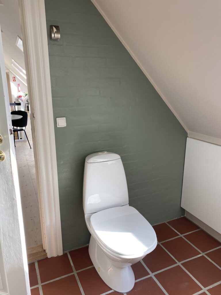Toiletterne var oprindeligt helt hvide og det føltes meget koldt. Udvalgte vægge har nu fået farve og der er tilført detaljer, så rummene er blevet mere varme og rare at opholde sig i.