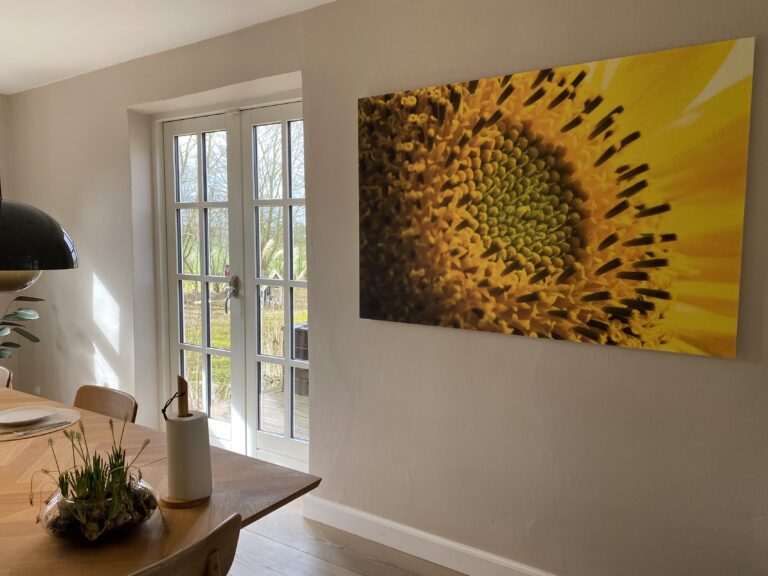 Vi har alle enorm stor gavn af at omgive os med alt, som har reference til naturen/det levende – biophilia. Samtidig er det afgørende for samvær, at akustikken er god. Derfor er der valgt flotte naturmotiver trykt på akustiske plader – og hestene på billedet går rundt udenfor på bostedet.